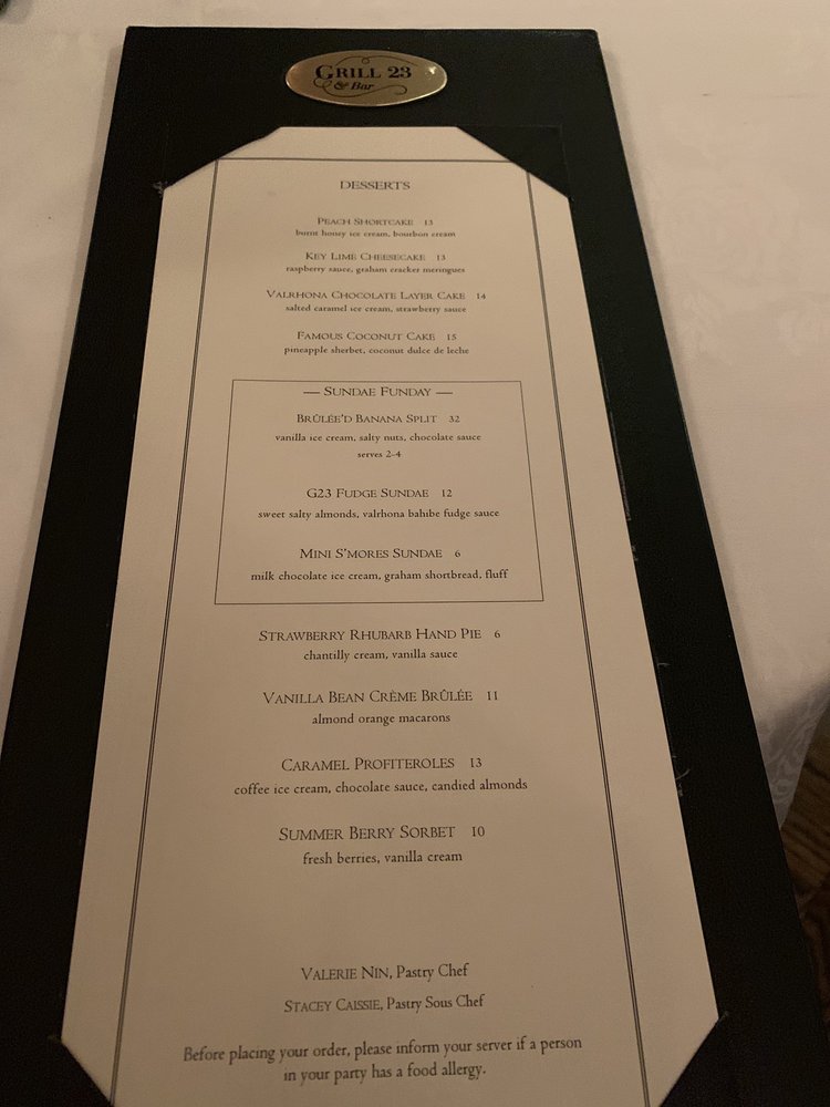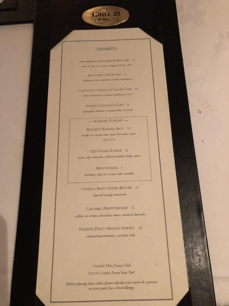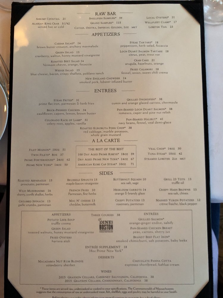 Grill 23 & Bar, located in Boston, MA, offers a luxurious dining experience with a focus on steaks, seafood, and wine. The menu features exquisite appetizers like Lobster Bisque, Crab Cakes, and American Kobe Steak Tartare. For mains, indulge in Dry Aged Prime New York, American Kobe Cap Steak, or Swordfish Togarashi. Additions like Truffle Butter and Hudson Valley Foie Gras elevate the dining experience. Customers rave about the flavorful steaks, attentive staff, and classy ambiance. Whether it's a date night or a celebration, Grill 23 & Bar promises to impress with its impeccable service and delectable dishes. Don't miss out on their signature tomahawk steak paired with a dirty martini for a match made in culinary heaven.